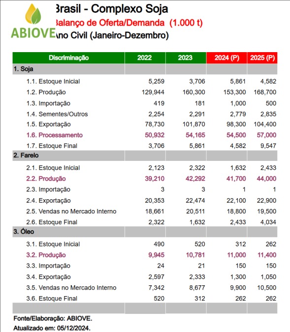 12月,Abiove预测2025年巴西大豆产量为1.687亿吨,比之前预期调高100万吨;2025年巴西大豆出口量为1.044亿吨,比之前预期调高30万吨;2025年巴西大豆压榨量为5700万吨,与前值持平。